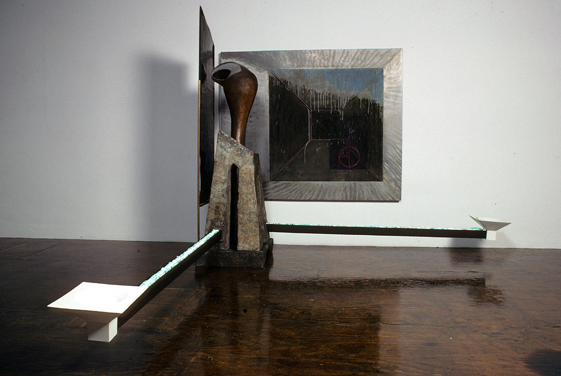 Ht.330 x W.240 xD240cm Mixed media: steel, concrete and fluorescent light.